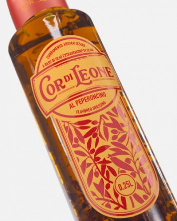 Doskonałej jakości oliwa z oliwek extravergine aromatyzowana papryczkami chili; Można jej używać do sosów, zup, mięs i wszędzie tam, gdzie użyłbyś szczypty papryczki chili.
